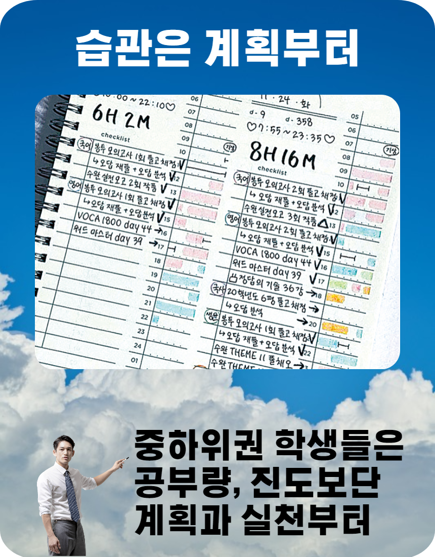 1:1 밀착관리(숙제관리, 내신 및 수행관리)